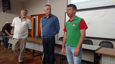 O coordenador geral do MSTL, companheiro Eduardo Cardoso, compôs a mesa de abertura, ao lado de Tarcisio Secoli, ex-secretário municipal, e do presidente do Sindicato dos Metalúrgicos do ABC, Wagner Santana.