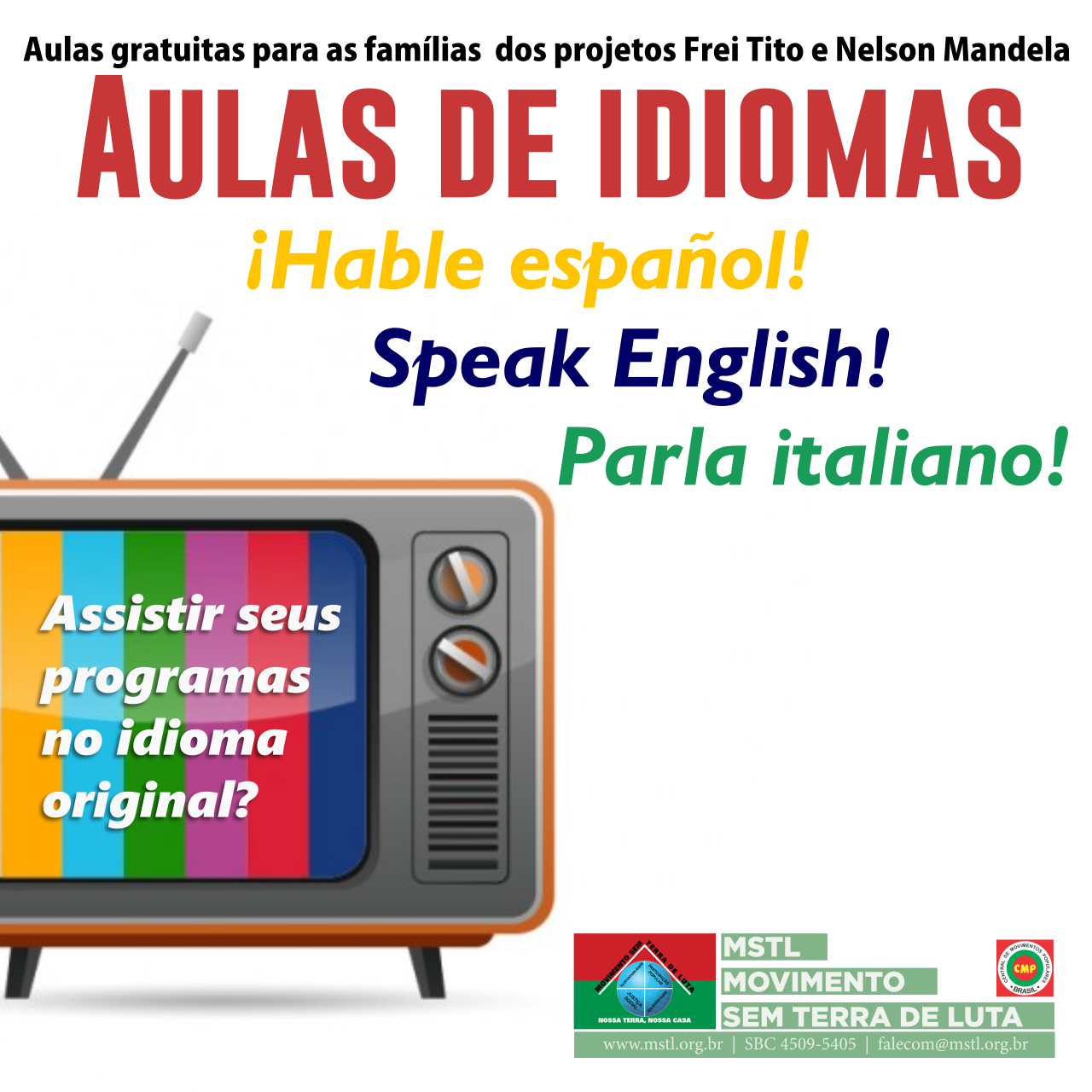 O MSTL oferece uma grande oportunidade aos Projetos Frei Tito e Nelson Mandela: cursos gratuitos de ESPANHOL, INGLÊS e ITALIANO.