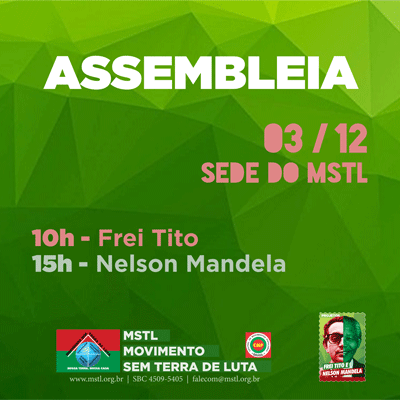 No dia 03 de dezembro, o MSTL promoverá duas assembleias, uma para o Projeto Frei Tito e outra para o Projeto Nelson Mandela.