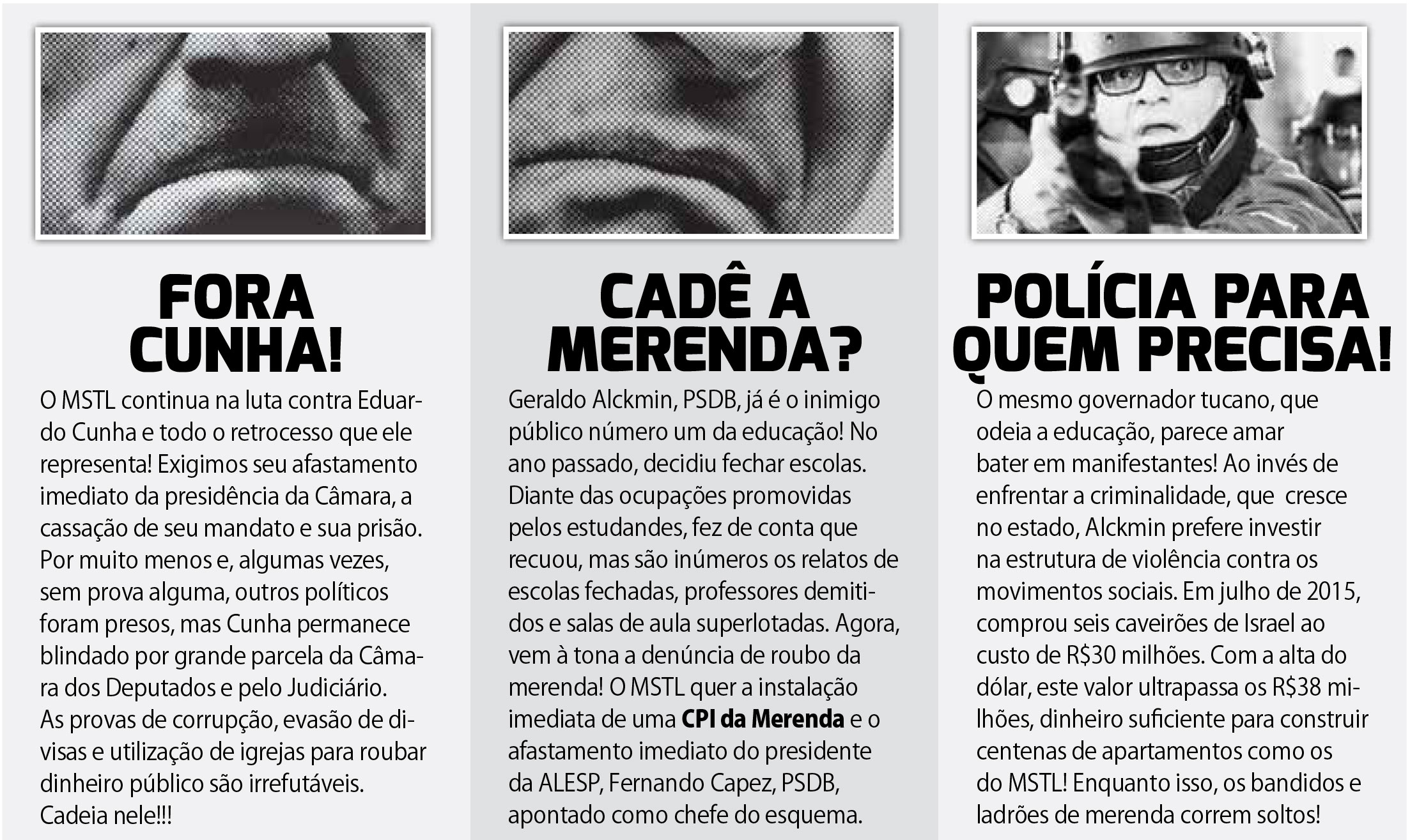 Também não aceitamos a imposição de uma agenda de crise econômica, agravada de maneira irresponsável por aqueles que promovem a crise política, com a utilização de poderes públicos, especialmente do Judiciário, na orquestração de um evidente golpe contra a democracia. Continuaremos bradando: DITADURA, NUNCA MAIS! Queremos a radicalização da democracia.