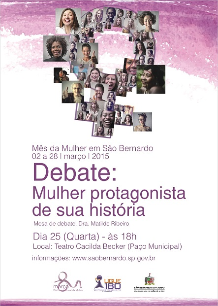 No dia 25 de março, às 18h, a convidada, Dra. Matilde Ribeiro, estará no Teatro Cacilda Becker, no Paço Municipal de São Bernardo do Campo, para falar sobre a participação das mulheres nos diversos espaços políticos, decidindo sobre os rumos da história do país a partir de sua própria.